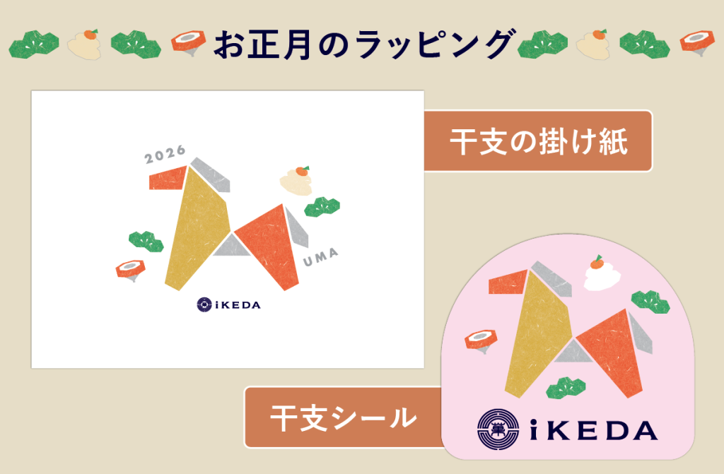2026年の干支「午」を描いた掛け紙付きの特別なギフト。